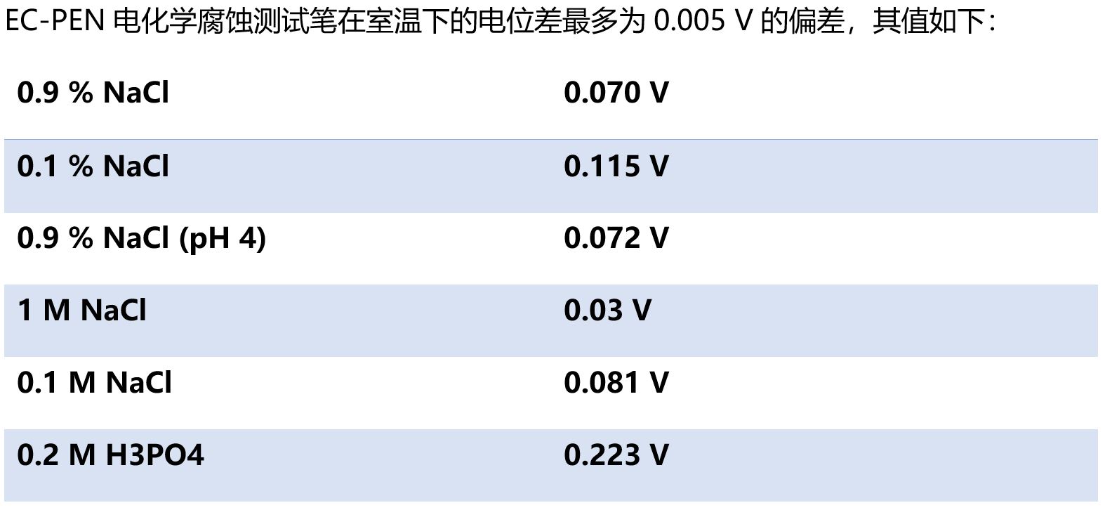 EC-PEN电化学腐蚀测试笔是实际条件下腐蚀电化学测试的传感器。使用EC-PEN可以进行现场电化学测量,从而确定有关腐蚀速率的相关信息。EC-PEN配有集成电极和电解液,从而便于携带和使用。EC-PEN可以与任意形状和大小的待测物接触连接,以快速测定材料局部的腐蚀性。EC-PEN包括一个电解液存储体,从而将Ag/AgCl参比电极和Pt丝对电极浸入其中。测量时将EC-PEN的尖端(多孔隔膜)放在待测部件的目标测试位置,电解液将从EC-PEN的尖端流出并润湿局部待测面。只需经过简便的准备就可以快速实现样品的电化学腐蚀测量。正是由于EC-PEN的便携性、简单的预处理性,对测试样品的无要求性,从而开辟了EC-PEN在腐蚀领域的原位无损检测性。EC-PEN是免维护的,通常大约允许200到500次测量,笔尖测量面积为1.5mm2。